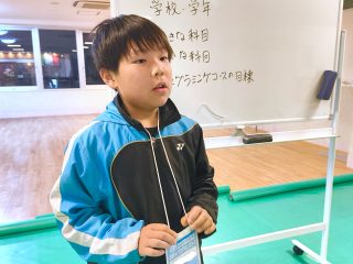 初回の授業は、機材の使い方という「基本のき」から。コンピューターやモニターの繋ぎ方、保存のコマンドなど、プログラマーへの第一歩を踏み出しました。