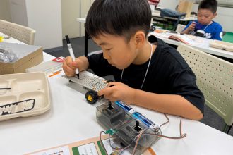 最後のパーツを組み込み、配線を整え、ついに自分だけのマシンが完成! 手を動かして作り上げたロボットが動き出す瞬間は、何度見ても生徒たちの目が輝く瞬間です。