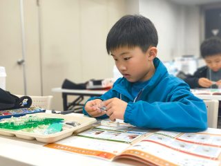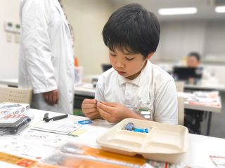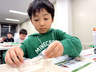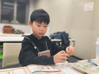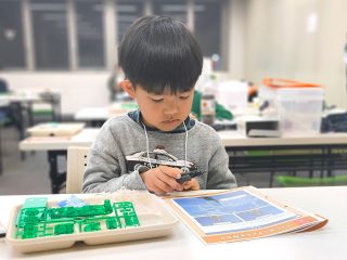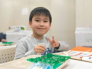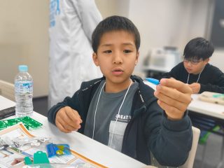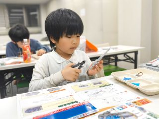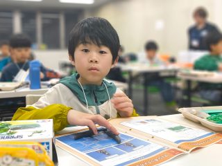 今年度から新カリキュラムとして採用された「フィンキックメカ」に、みんな興味津々。テキストを1ページずつ確認し、小さなパーツを一つひとつ丁寧に組み上げていきます。初めて使う工具に戸惑うかと思いきや、その集中力はプロ顔負け!新しいロボットと一緒に、みんなの成長がここから始まります。