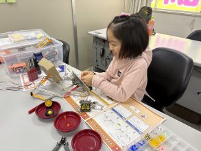 ちょっと早いですが大型ロボットのスピードアップ改造をしました。 ギヤボックスを分解して、小学2年生には難しいか・・・でも良く出来ました! あとは春の大会を目指して強化しましょう! おっと、その前にアイデアコンテストの作品を練りましょうか! いつも楽しそうです!