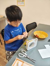 先生の話を聞き、教科書を見ながら、ぷるぷるキツネを丁寧に製作。