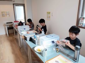 ツインギヤモーターボックスやクランクギヤボックスの組み立て、ザリガニロボット製作、