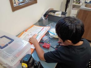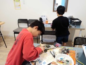 大型ロボットや大型ロボット改造中!立って製作するほど集中していました。