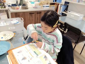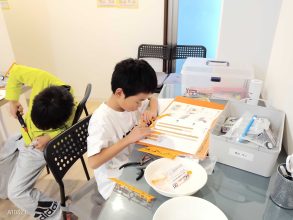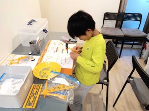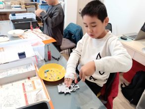 変形クローラーでは、ギヤボックスの仕組みを学んだり、パンタグラフを組み立てました。