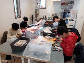 「ぶんかいするの?せっかくつくったのに」と渋々、分解する子ども達。