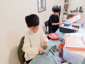 マガジンの組み立てや取り付けをしている子は、丸ビスにナットを取り付ける作業が