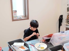 していました。先に終わった子に「めっちゃ、たいへんだったよ」「すこしずつきるといいよ」
