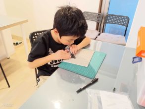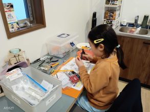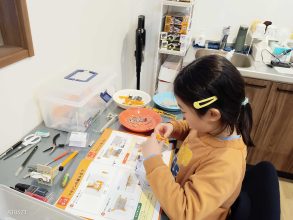 ユニバーサルプレートの切り出しをした子は、ユニバーサルプレートが硬くて切るのに苦戦