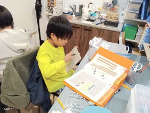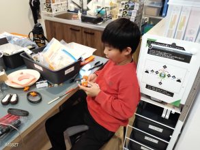 ボトルキャップランチャー製作をしている子は、ユニバーサルプレートの切り出しや