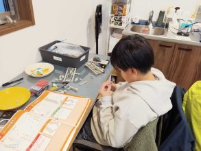 とアームクローラーロボットを分解して、試行錯誤していました。