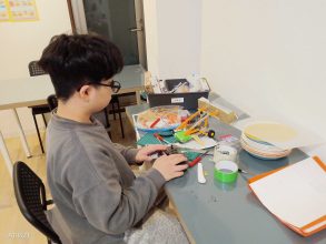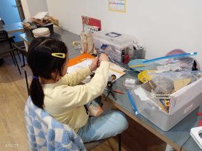 ザリガニロボット製作はザリガニを作り、モーターをどこにつけるかで動きがかわります。