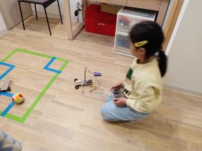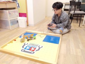 ツインモーターギヤボックスを取り付けて、ボール運びゲームをしました。