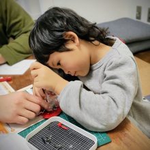 固いパーツやニッパーの向きなどに悪戦苦闘しながらも、真剣な表情でパーツ一つひとつに丁寧に向き合っていました。