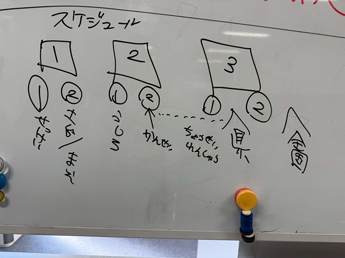 大会までの逆算スケジュールをたてました。時間を意識して進めます。この進め方も過去の苦い経験がるからこそみんな納得して受け入れられています。
