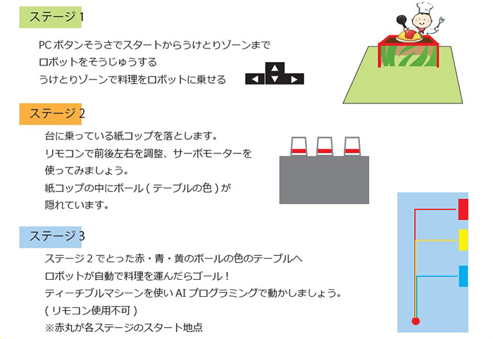 その料理を運ぶまでの流れは生徒にプログラミングを組んでもらいます。