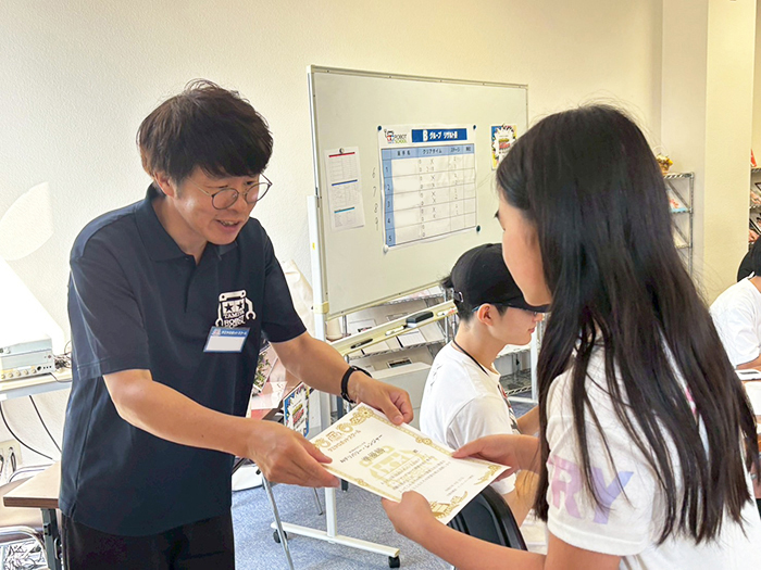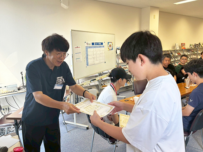 準優勝はインターパーク教室の生徒となりました。授業内ではコツコツと真面目にマシン作りに励み、自主練習などにも参加して最終調整を繰り返しているところが印象的でした。準優勝おめでとうございます!