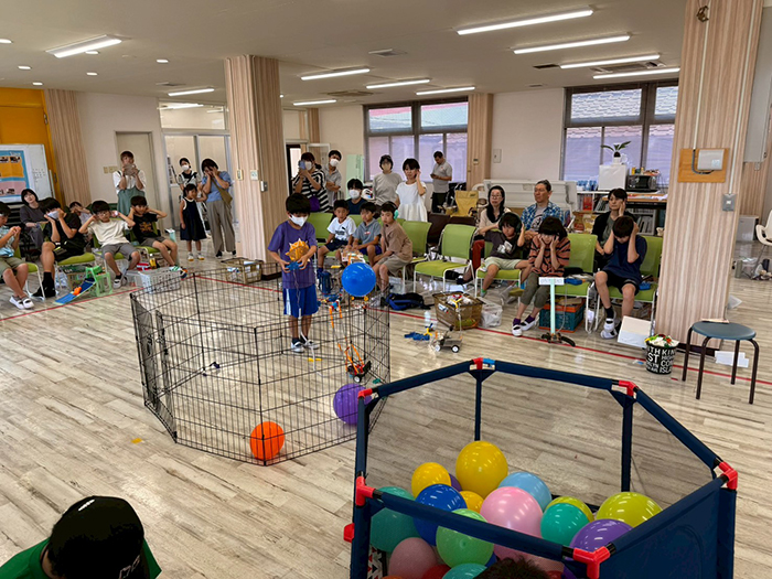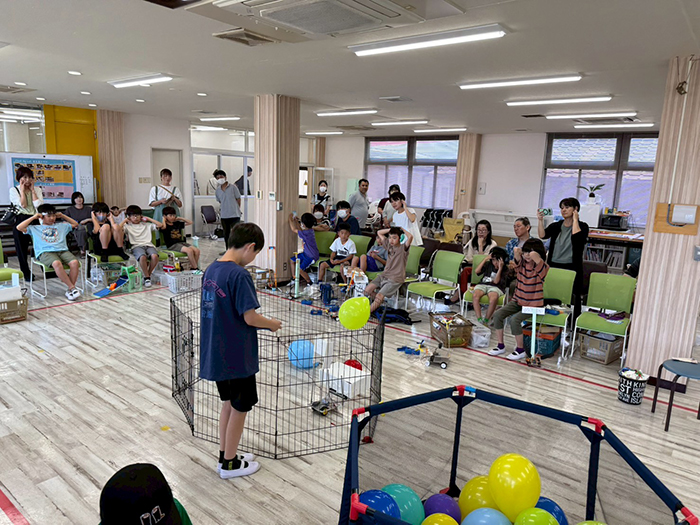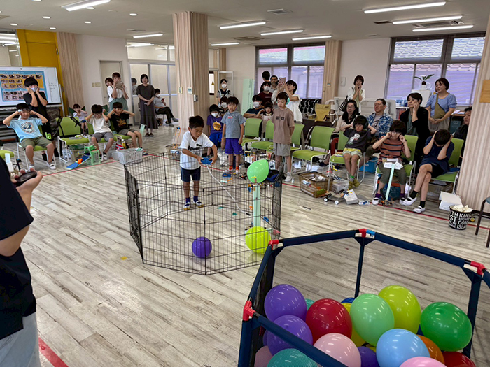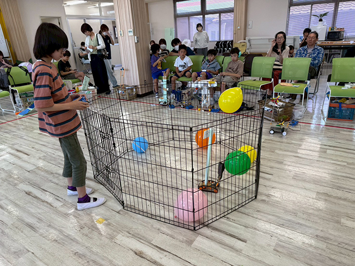 自分のアイデアや作戦を実行するロボットを自分の脳と手でつくり、操縦してパンパンと風船を割ると褒められる!なんて楽しい時間でしょう。