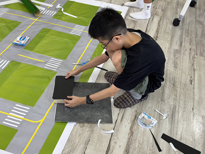 アスファルトと花壇はほしいかな…いろいろ考えながら上手に切ったり貼ったりしています。