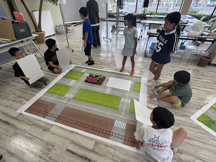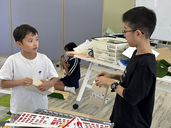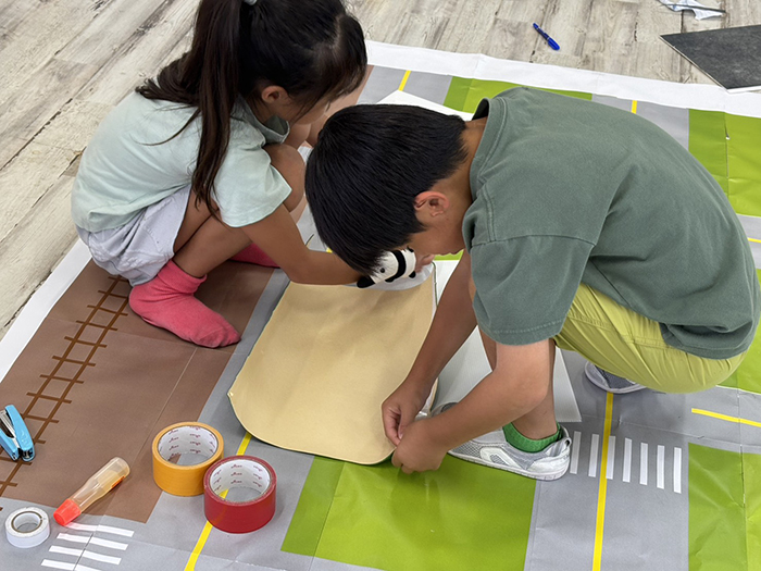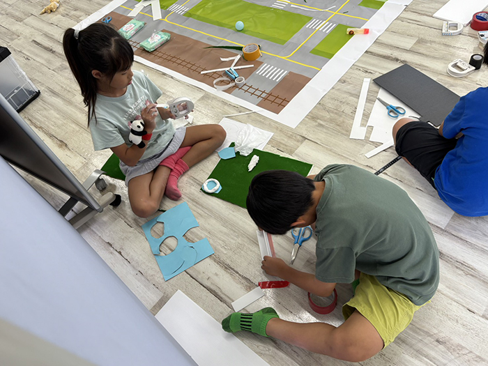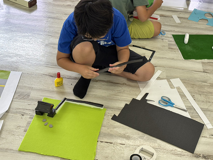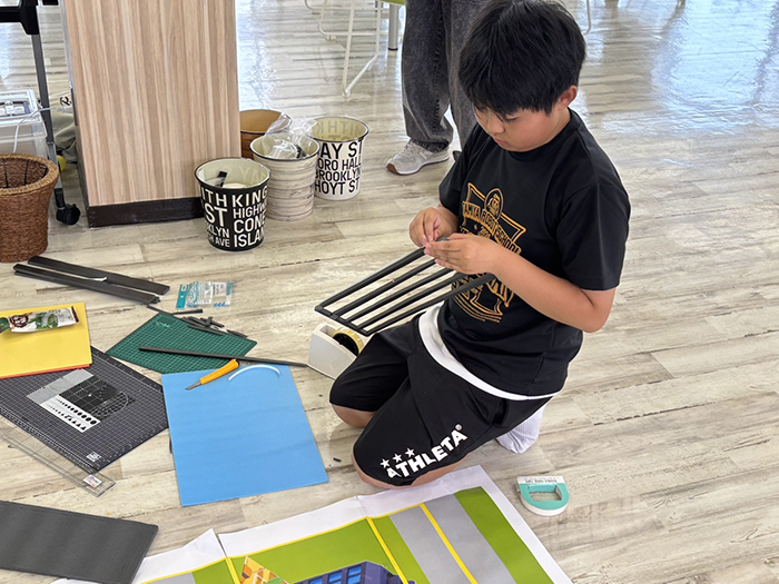 【お店・ビル・公園・学校・家・駅】のジオラマをそれぞれ分担を決めて作っていきます。
