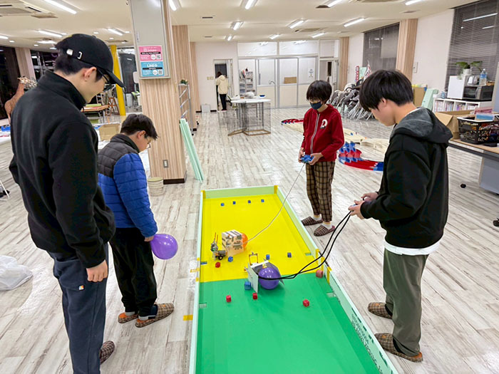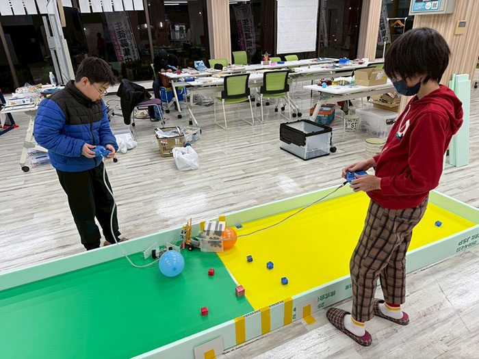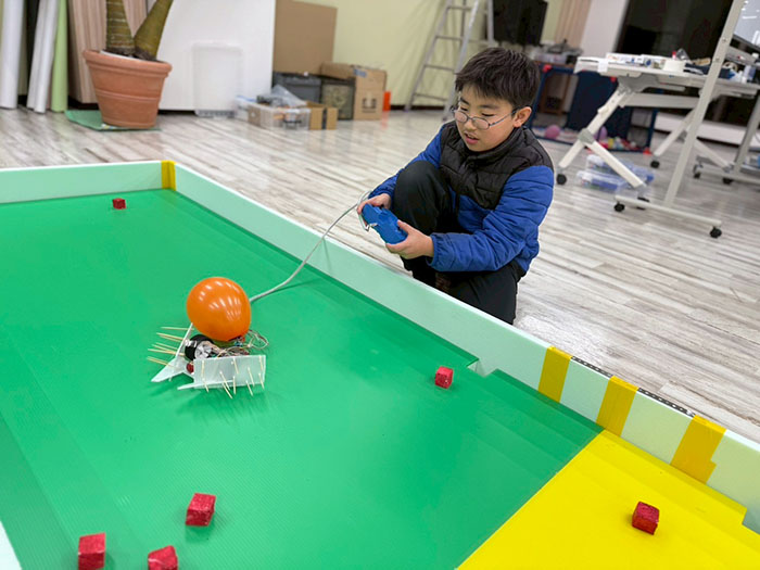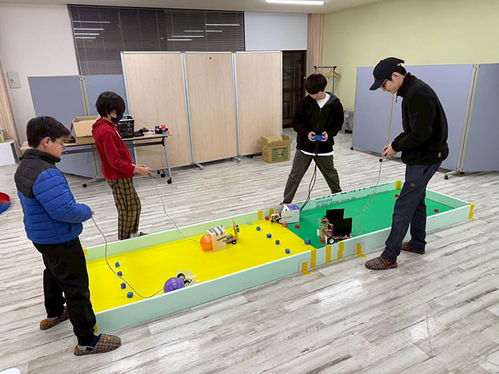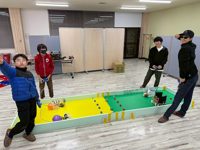 本日はロボコン大会に向けて最後の授業になりましたので、完成させて試合を何回も行いました