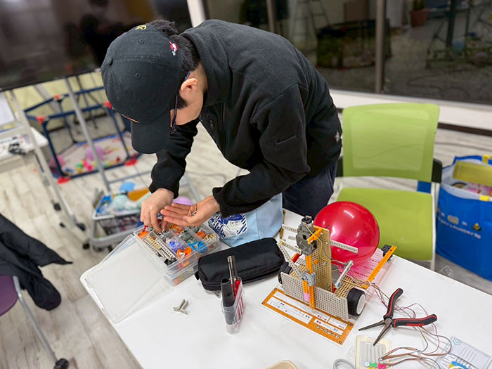 必要なパーツがすぐ取り出せるように、教室ではネジボックスをお渡ししています。はじめ1個だけだったBOXも2個3個と増えています。
