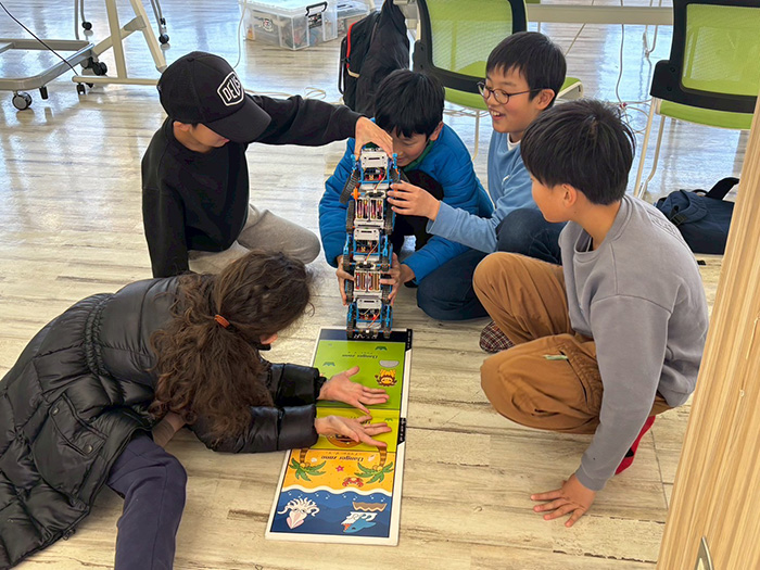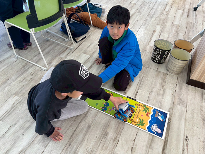 こちらのクラスではプログラムの速さをコントロールして「すすむ距離をはかろう」を目標に進めました!