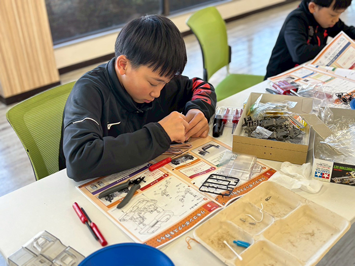 基本的に説明書を見ることができており、ここのクラスは作る全体のスピードがはやいので、リモコンを終わらせるところまでが目標でしたがリモコン+ダブルギアボックス作りまで全員進めることができました!