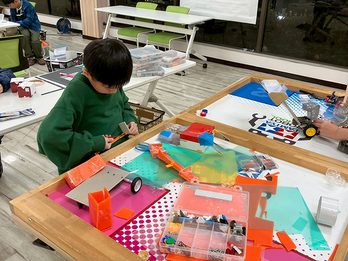 調整がたくさん必要となる難しい仕組みのマシン作るならお家または自主練習(大会が近づくと教室開放をいたします)での製作も必須となってきます。