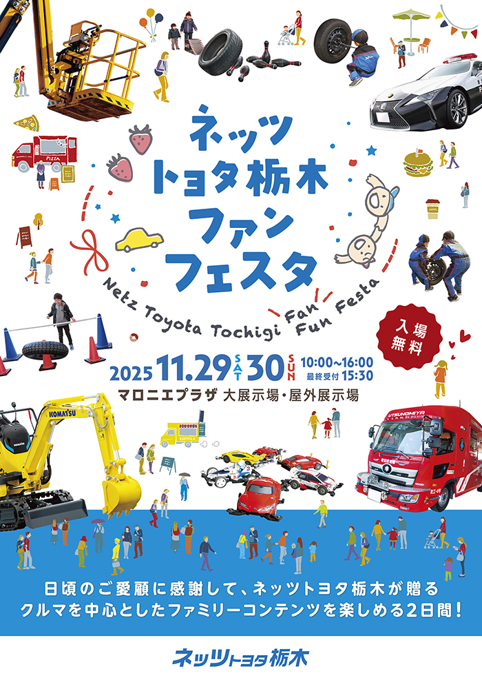 今回は2025年11月29日(土)・30日(日)にネッツ様主催の「ネッツトヨタ栃木ファンフェスタ」に参加させていただきました!