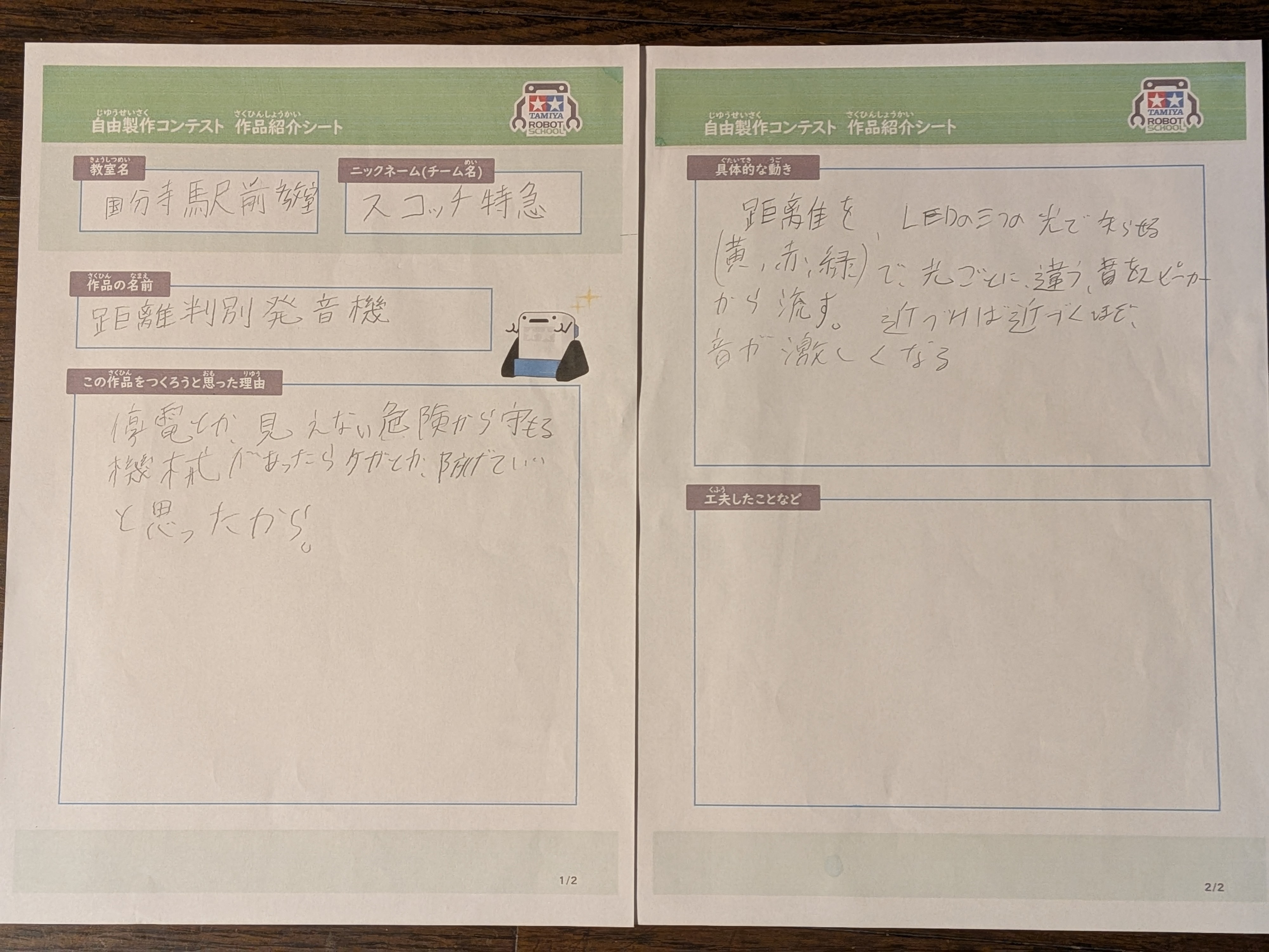 時期がズレての入校だったので、中学生になってしまい、忙しくなってしまいました。そのため作成に苦労し、完全には完成できませんでした。でも、頑張っていました。