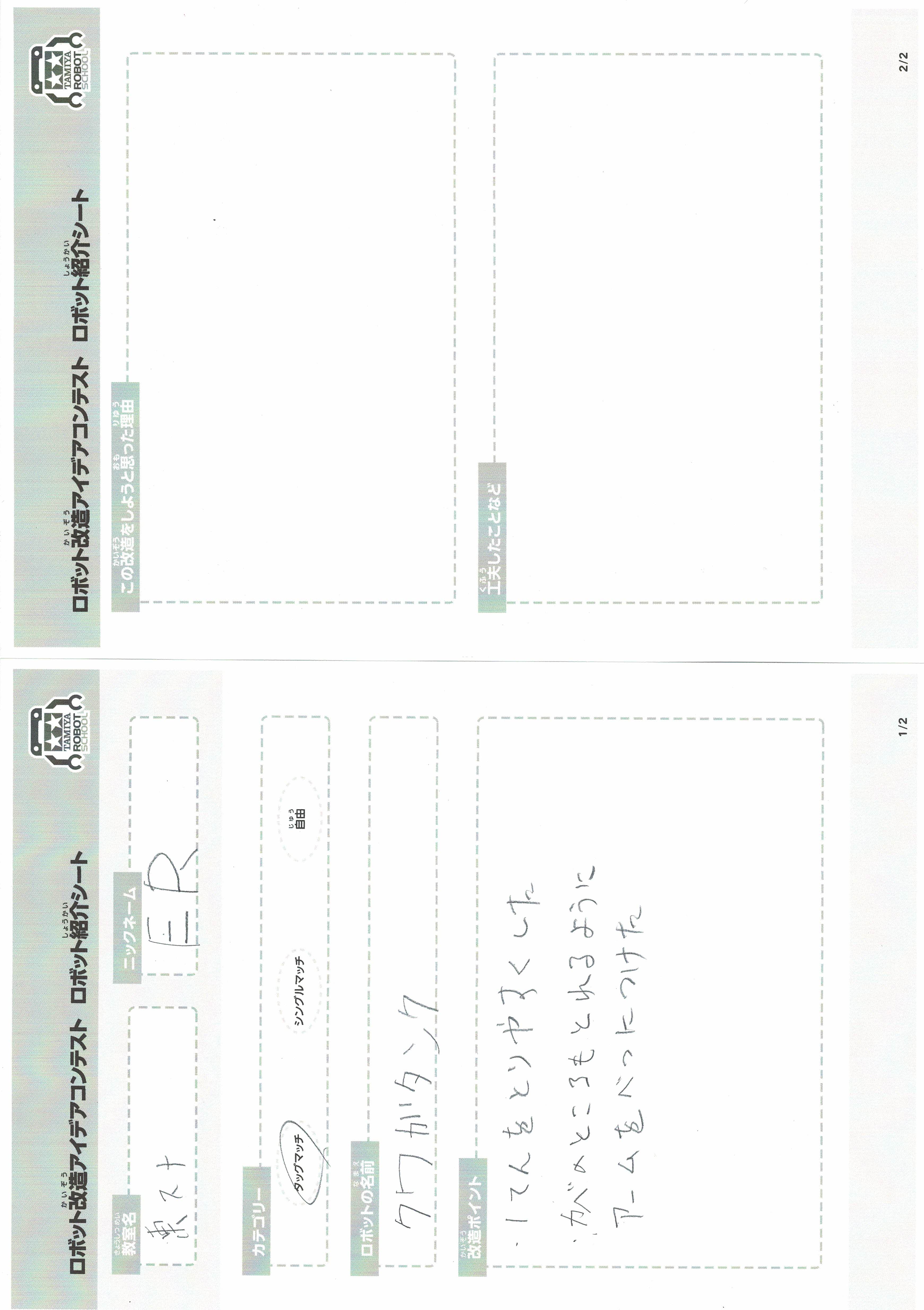 「授業で使用しないタミヤパーツを使えば、もっとスゴいロボが出来るのでは?」をテーマに取り組んだ、非常に意欲的な改造ロボットです。