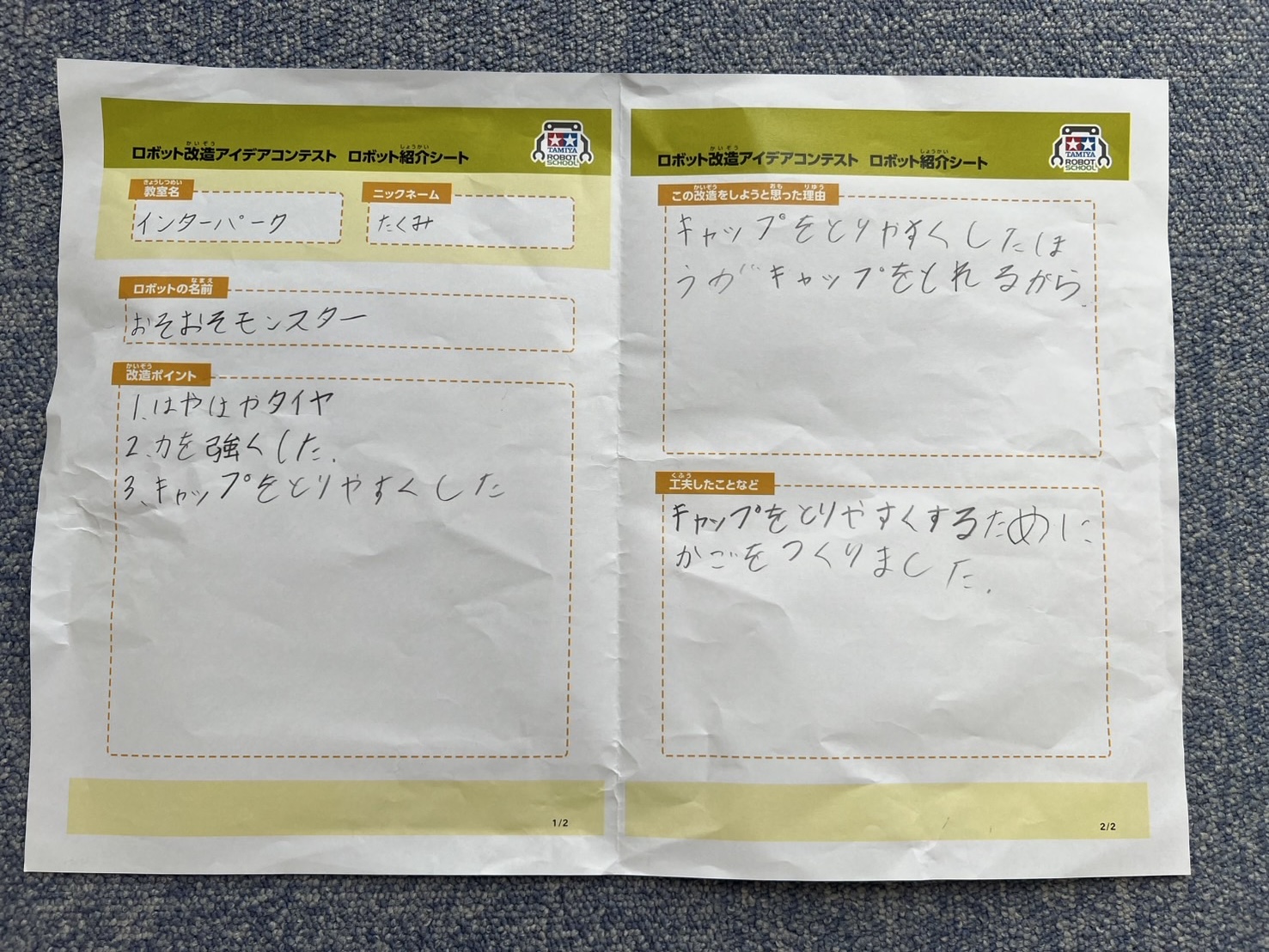 形状とスピードに最後の最後までこだわり抜いた最強の一台が完成しました。機敏な動き、確実なキャップ収集能力、最大限の得点力、ゼロから見直して完成させました。絶対に諦めない不撓不屈の精神力が宿ったロボットです。