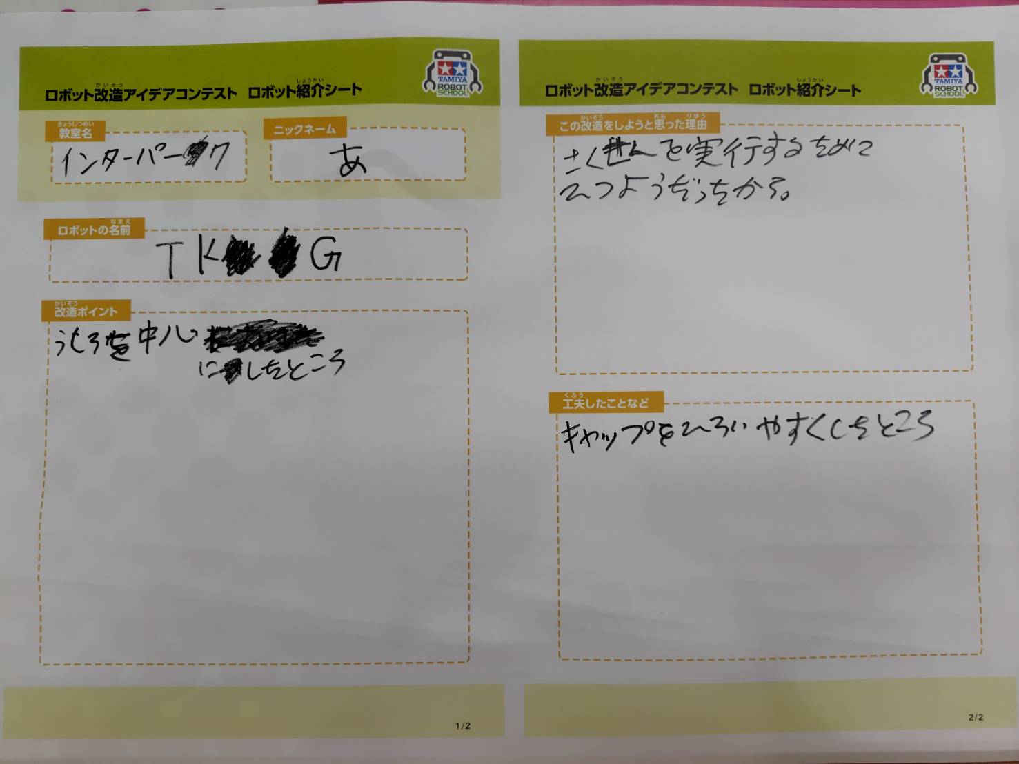 青と黒基調のデザインがかっこいい、ダンプ型のロボットです!ペアの子との作戦を遂行するために、モーターや材料まで徹底的にこだわり、非常にスムーズな動きを実現することが出来ました!