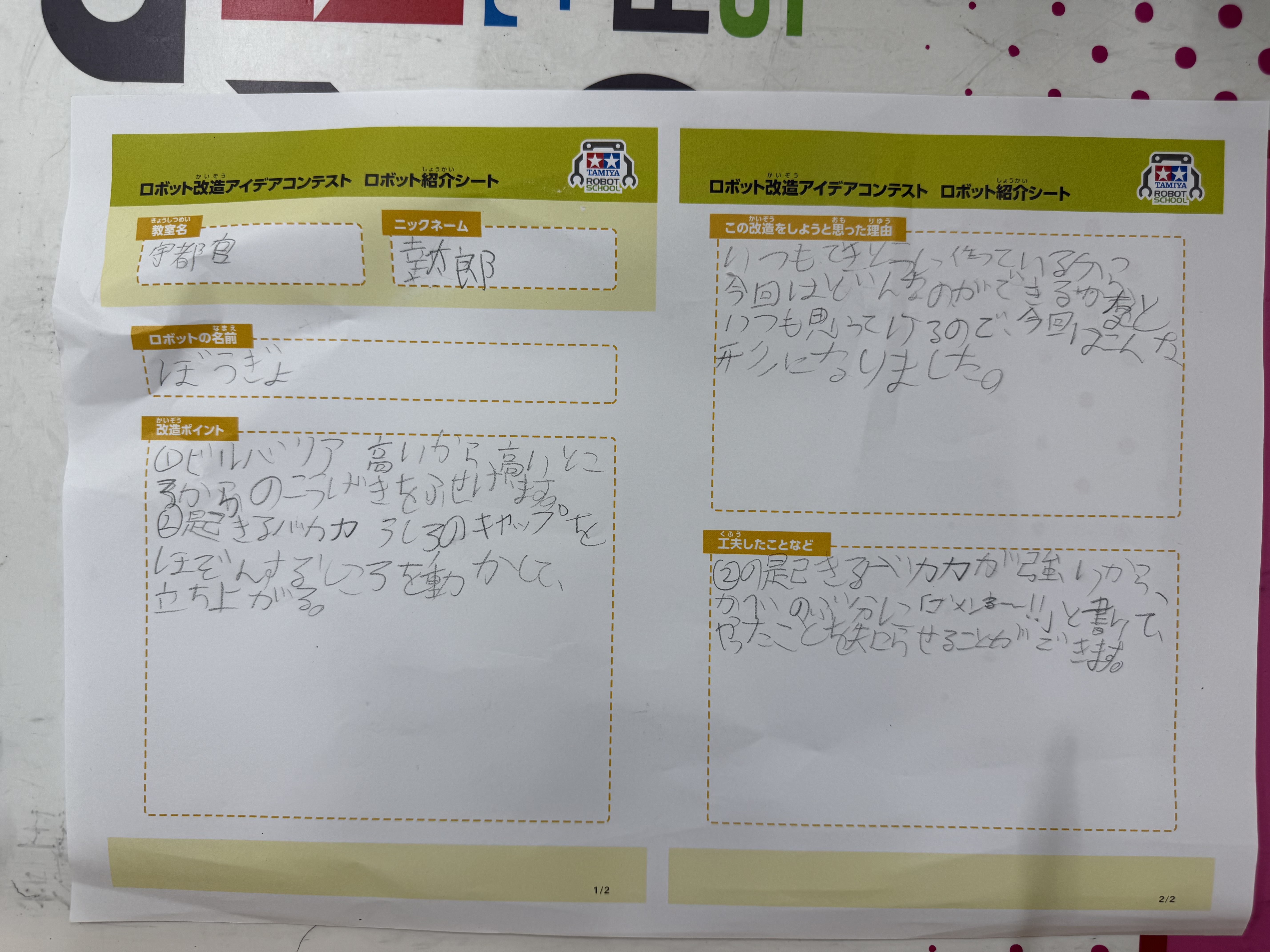 高さ日本一のロボットが完成しました。軽量化にも気を使い動きもスムーズ、バランスも抜群ですね。前のシャベルですくったキャップは後ろのダンプにためるのですが、このふたの作りが前代未聞のスーパーストロータイプを採用しました。するりと流れるようなノンストレス仕様で掴んだキャップは離さずに、攻撃の際は一個も残さずに嵐を起こします!