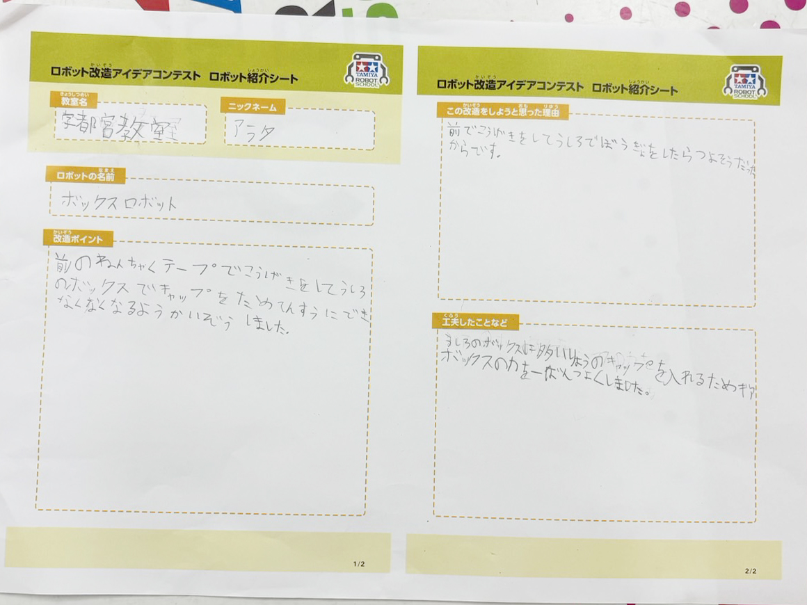 ショベルでコートに入ったキャップをどんどん取りつつ、後ろで5点キャップなどの高得点キャップを粘着で貼り付けます。先日のメカニック県大会では高得点を最後に押さえる攻撃がよく効いたようで、粘着でついた青2個のみで大逆転をしていました!よく考えられたロボットですね。