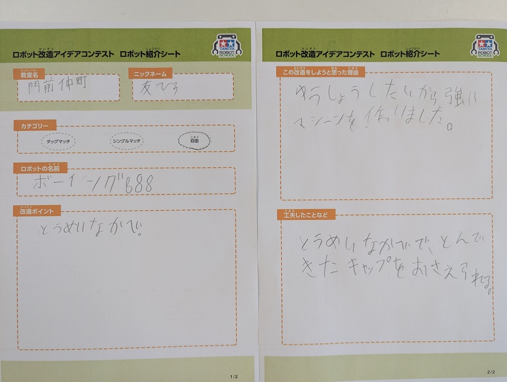 前回、アームの力が弱すぎて、上がりきった時と下がりきった時にギヤが噛んで戻れなくなってしまい、手で戻すしかなかったのですが、今回はギヤ比などいろいろと改良を加えて修正することができました!どんどんパワーアップしていくので今後もたのしみです。